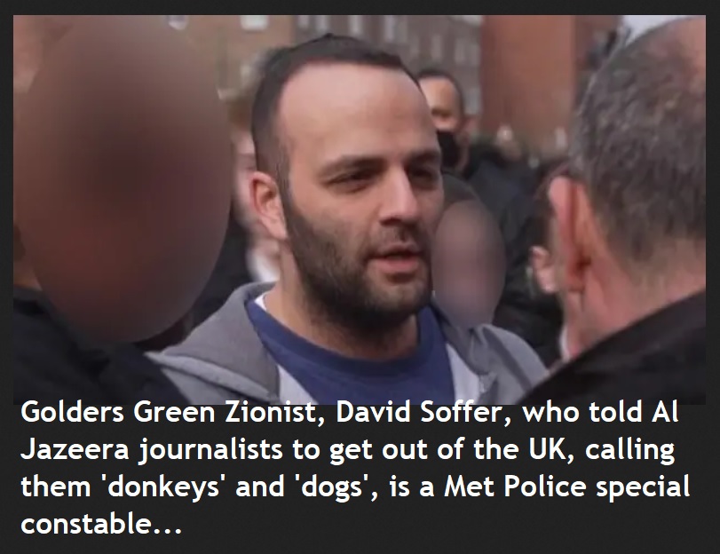 Craig Murray – Iran has no track record of attacking ambulances. Pro Zionist police force in North London. Man who confronted Al Jazeera journalists was Met Police special constable David Soffer told members of the Al Jazeera team to “go back to Qatar” A man who confronted a team of journalists working for Al Jazeera during an altercation after the Golders Green ambulance attacks was a volunteer Metropolitan Police officer. The crew of journalists were reporting on an arson attack which targeted Hatzola ambulances – a Jewish community-run service – on Monday when they were confronted by a group of people telling them to leave the area. One of the individuals has been identified as David Soffer, a Met Police special constable, as first reported by Declassified UK then confirmed by the BBC. He was seen calling one of the team “you donkey, you dog” in Arabic. The Met has referred the incident to its professional standards team for assessment. Videos from the scene show a group of people from the Jewish community shouting: “Go home” and “Al Jazeera off our streets”. Reporters from the Press Association also heard the journalists called “terrorist sympathisers”. Soffer, who is also a technology businessman, then arrived and told them to “go back to Qatar”. In Arabic, he continued: “Go from here you donkey… go from here you donkey, you dog”. He then called one of the team a dog again and, in Hebrew, he and one of the Al Jazeera staff then call each other donkeys. At one stage, Soffer warned another person next to him to not be violent. When he was told to calm down, he insisted he was calm. A female reporter told Soffer “shame on you” after she believed he suggested that she was an antisemite. He told her he could define his own racism. Soffer then told them no Jewish person was going to hurt the team but no one was going to talk to them. BBC News has contacted Soffer and Al Jazeera for comment…