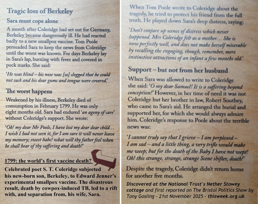 Budget 2025 conspires to plunge voters into more debt; Bristol genocidalists Evicting Gypsies? Irish Gypsy Jimmy Donovan – 1799: world’s first infant vaccine death? Berkeley, inoculated son of romantic poet Samuel Taylor Coleridge – Ex-Marshioness’ Tracy Worcester accused of anti Semitism by Jewish News and Daily Mail – NOT The BCfm Politics Show presented by Tony Gosling