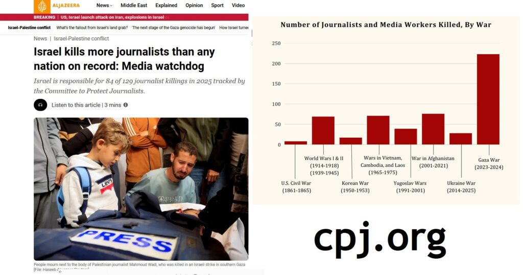 Death of journalists in Gaza – over 220 so far. News Graveyards: How Dangers to War Reporters Endanger the World Journalist Nick Turse (Fellow, Type Media Center) examines how, since the 2000s, national governments and terrorist groups – from Israel, Syria’s Assad regime and the United States to the Islamic State – have found ways to curtail conflict coverage through myriad means, from repressive policies to armed attack. All have killed journalists and helped to foster a culture of impunity, turning conflict zones like Syria and Gaza into “news graveyards.” War Reporters Killed The war in Gaza has, since October 7, 2023, killed more journalists than the U.S. Civil War, World Wars I and II, the Korean War, the Vietnam War (including the conflicts in Cambodia and Laos), the wars in Yugoslavia in the 1990s and 2000s, and the post-9/11 war in Afghanistan, combined. Worldwide, threats to journalists in conflict zones are increasing. In 2023, a journalist or media worker was, on average, killed or murdered every four days. In 2024, it was once every three days. Most reporters harmed or killed, as is the case in Gaza, are local journalists. Not only do local reporters face great risk, standing alone in the face of extraordinary violence; this also impairs news coverage and, as a result, the worldwide information ecosystem. The decreasing number of experienced foreign correspondents in conflict zones, due to long term shifts in the global news industry that have led to the de-prioritization of international news coverage and the closure of foreign news bureaus, has likewise crippled critical knowledge and helped facilitate the creation of news graveyards. Reliable information about wars and conflicts is essential for the wellbeing of local populations and is necessary to enlighten the world on the forces behind wars and the toll on civilians. Nick Turse is a fellow of the Type Media Center and was previously an Ochberg Fellow at the Dart Center for Journalism and Trauma at the Columbia University Graduate School of Journalism. He has reported on civilian harm in the Middle East, South Asia, and Southeast Asia and from conflict zones across Africa, including the Democratic Republic of Congo, Libya, Somalia, and South Sudan. He has received a Ridenhour Prize for investigative reporting, a Military Reporters & Editors Association Award for Best Overseas Coverage, and a Deadline Club Award for Reporting by Independent Digital Media.