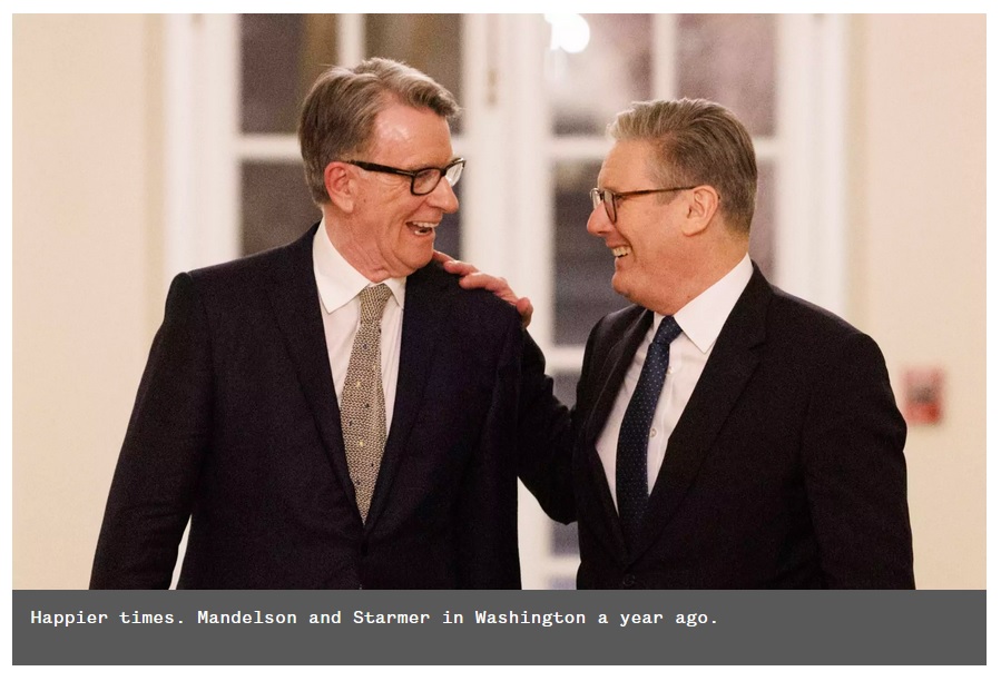 Epstein Files. Mandelson arrested this week. Jacob Rees Mogg on You Tube the day before Mandelson arrested – why is he not arrested yet? Prescient! Jacob Rees-Mogg explains why Peter Mandelson should be arrested the evening before he was Crystal ball? Did Jacob RM predict the arrest of Peter Mandelson the evening before it happened? original: • Video Jacob Rees-Mogg – Why hasn’t Mandelson been arrested? Only three Labour leaders since the early 1980s have steered clear of Peter Mandelson, and they were John Smith, Jeremy Corbyn and Ed Miliband. Neil Kinnock, Tony Blair, Gordon Brown and Keir Starmer all allowed Mandelson to be an intimate of their operations, a key player. Starmer was very pleased with the appointment. Thought it was going well. Got the trade deal done thanks to Mandelson’s ability to charm Donald Trump, to get round him, to use his snake-oil salesman techniques to get what the British Government wanted. This seemed to be good. But Sir Keir Starmer knew, the public knew, it was on the public record that Mandelson had maintained his relationship with Epstein after Epstein had been found guilty. And this brings the scandal right back to the Prime Minister and to the Prime Minister’s judgement. What was he doing? Appointing a man who had been disgraced several times for a financial scandal, for an influence scandal, and for dealing with a sex pest scandal as our ambassador. How degrading is that to the standing of the United Kingdom on the world stage? What can our friends in Washington think, that the Prime Minister of this country thought it suitable to send somebody who was friendly hobnobbing with a paedophile after he had been found guilty? And then some of the pictures come out and you see the smoking gun that yes, Mandelson may have misled people. But when those pictures came out, you knew that the relationship was deep and close. How many of you viewers have been photographed in your underpants at a friend’s house? I think that is a very odd type of picture to have. I know you may not all be like me and insist on wearing a suit at all times of the day and most of the night, but isn’t that just weird and sleazy? Doesn’t that indicate a closeness of relationship? That is strange, to say the least, and that has just added more information to what we already knew. And this leaves the Government in a state of stasis. It cannot do anything. It is flatlining. The Prime Minister has no moral authority left. It was taken from him once he appointed Peter Mandelson and Mandelson’s dreadful behaviour was discovered every last detail of it unearthed.